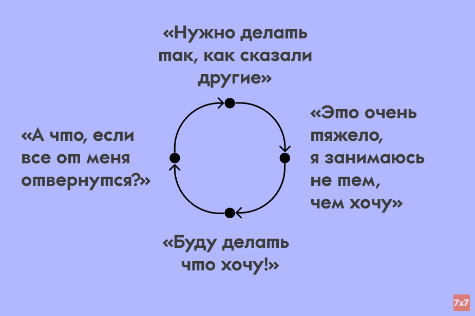 С детства родители учат не выделяться, не заявлять о себе и быть удобным для окружающих. Нельзя отказывать людям в помощи. После двадцати лет нужно обязательно завести детей. Нельзя говорить людям то, что думаешь. Даже несмотря на то, что это мировоззрение может идти вразрез с реальными желаниями взрослеющего человека.