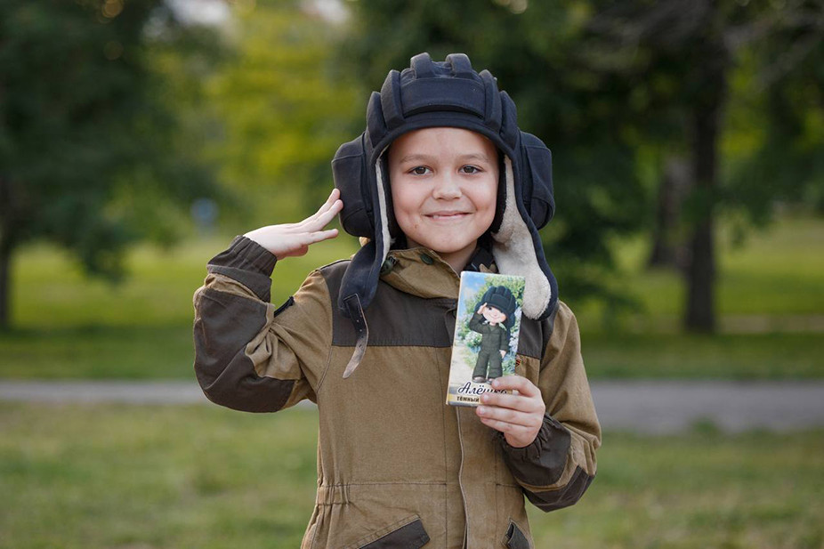 На замену символу «бабушки с красным флагом» сразу пришел 8-летний мальчик Алеша Павличенко. Видео, как он бежит к колоннам военной техники и отдает честь, в мае 2022 года появилось в Z-каналах, затем посты с ним сделали Владимир Соловьев, «РИА Новости», RT и даже официальный канал Минобороны. Алешу тоже стали рисовать, делать с ним мультики, шоколад, сгущенку, купюры (которыми нельзя расплатиться) и памятники. Впоследствии мальчика приняли в военно-патриотическое движение Юнармия.
