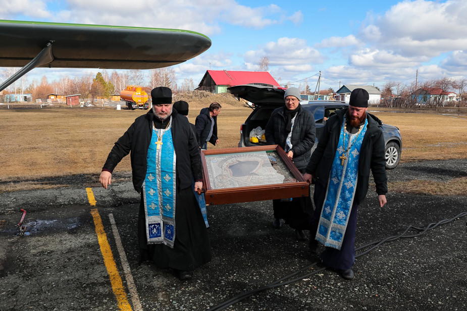 В апреле 2024 года в Курганской области резко рос уровень воды. Священники облетели регион с иконой Божией Матери, чтобы спасти регион потопа. Это не помогло - наводнение стало одним из крупнейших в регионе за последние 100 лет. Власти эвакуировали более 13 тыс. человек, более 5 тыс. домов было затоплено.