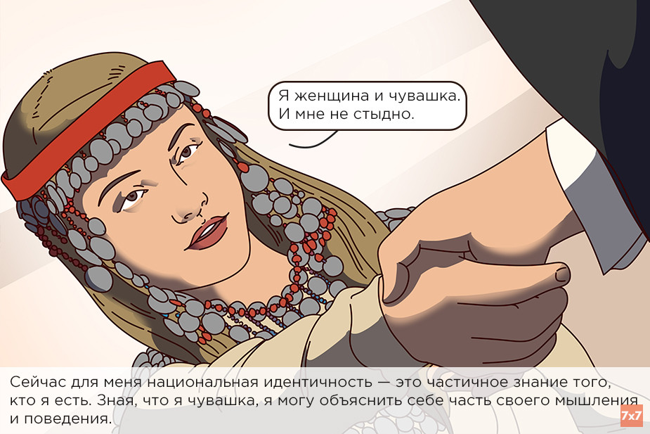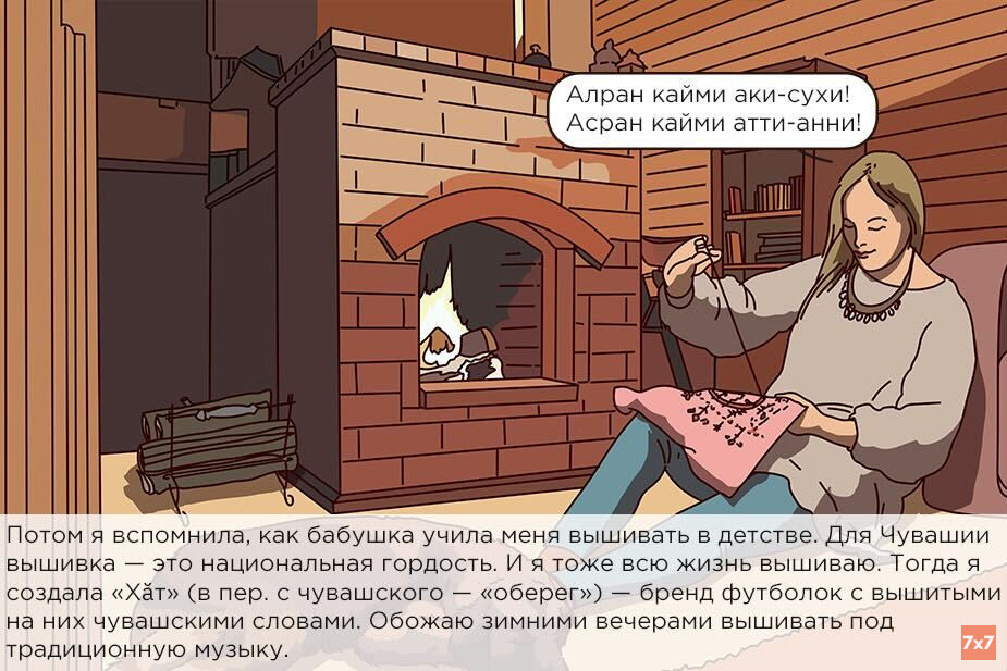 Анна очень долго стыдилась своего чувашского происхождения. И даже радовалась, что обладает «типичной славянской внешностью». Однако, взрослея, девушка стала задаваться вопросом: «Может, быть чувашкой не так страшно?» Переломным стал февраль 2022 года. Она захотела почувствовать свою инаковость, сбежать от «русского мира», напиравшего со всех сторон. Чувашия и чувашская культура дали Анне и убежище, и вдохновение.