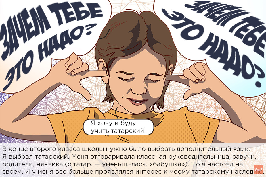 Татарская бабушка Тимерхана не стала учить сына и внука своему языку — подумала, что это будет для них бременем. Тимерхан рос в русскоязычной среде, в окружении преимущественно русских православных людей. На Пасху он красил яйца, в Прощеное воскресенье просил прощения у родных, и эти традиции остались с ним до сих пор. Но кроме них у Тимерхана появились другие: изучение татарского языка, разговоры с бабушкой, а также постижение своей второй культуры.