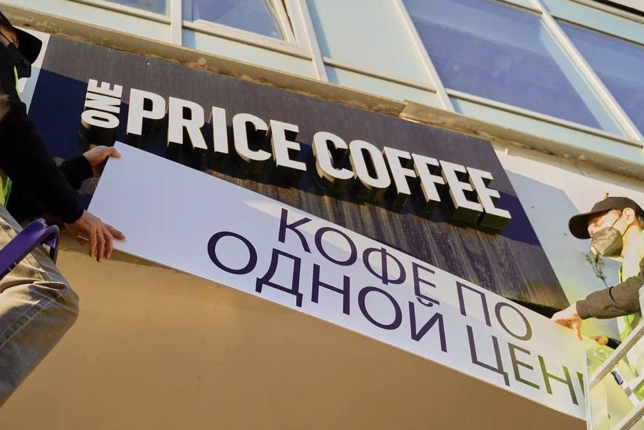 Перфоманс-художники заменили английские вывески на русские ко Дню русского языка, Москва, июнь 2022 года. Фото: @ostorozhno_moskva / Telegram. Источник: t.me