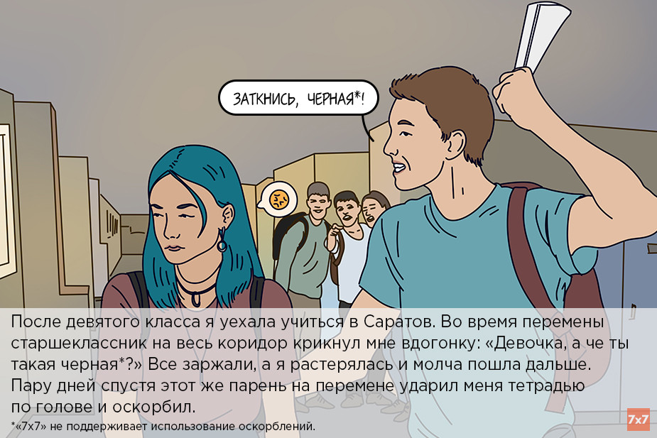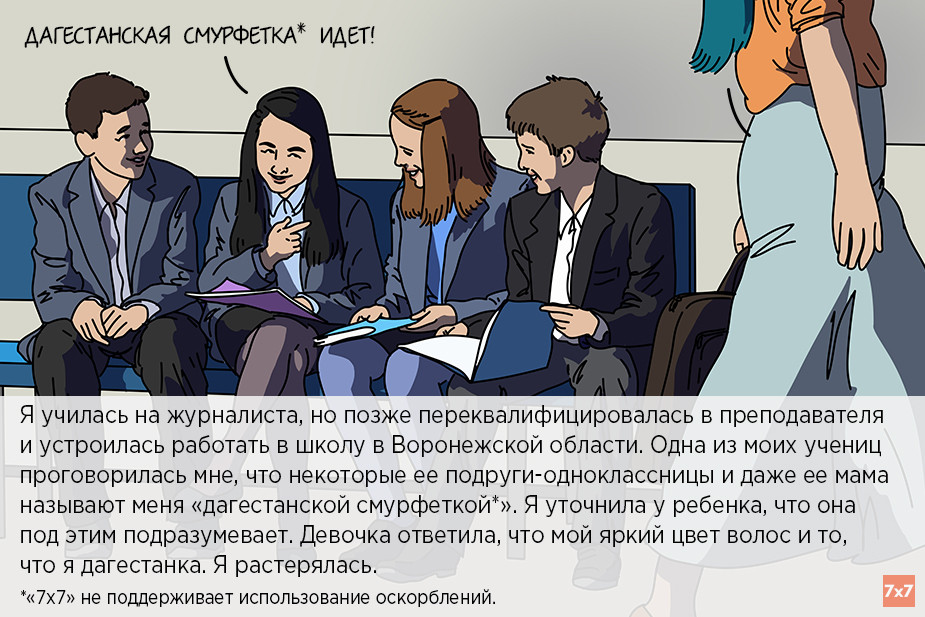 Впервые Мадина столкнулась с ксенофобией в школе. От нападок одноклассников ее защитила учительница. Повзрослев, Мадина сама устроилась на работу в школу. История повторилась — и теперь ее оскорбляли не только ученики, но и их родители. Ей пришлось самой объяснять обидчикам, почему нельзя дискриминировать людей по национальной принадлежности.