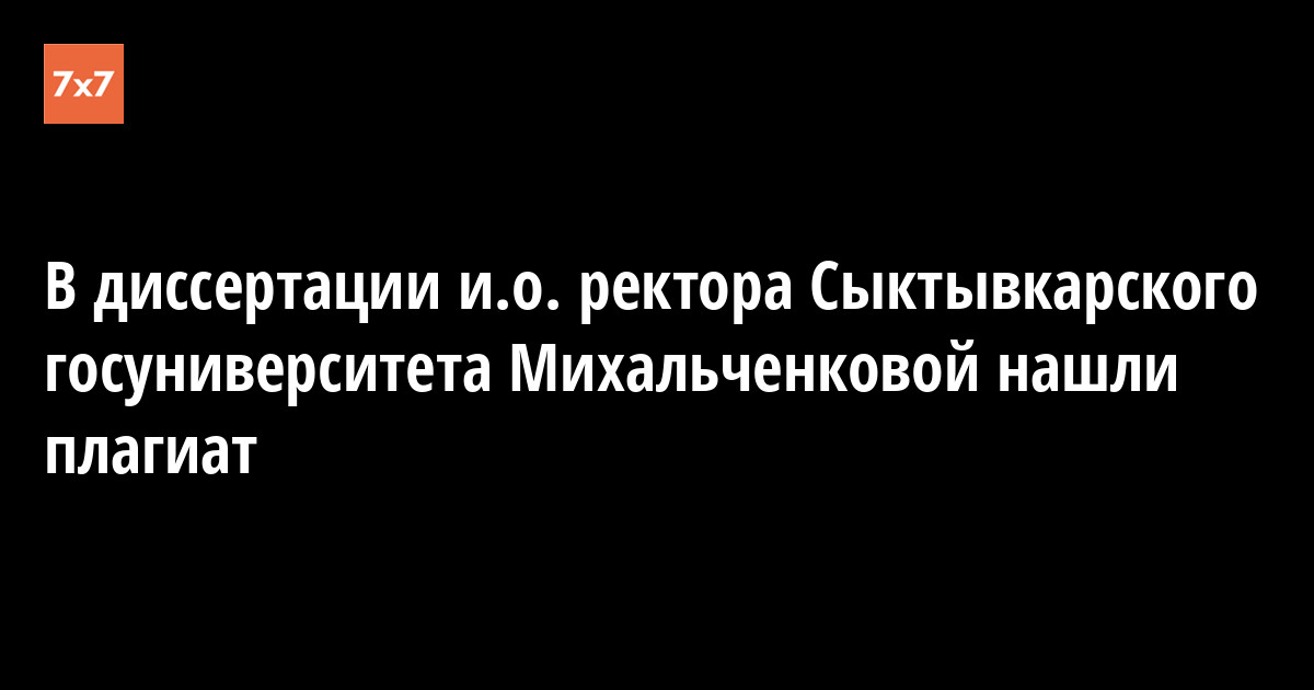 Издание «Красное Знамя» 2 марта сообщило о том, что в диссертации и.о. ректора СыктГУ им. П. Сорокина Натальи Михальченковой обнаружен плагиат. Такие данные предоставил журналистам Экспертно-аналитический центр Российской академии наук. Почти половина научной работы Михальченковой состоит из заимствований.