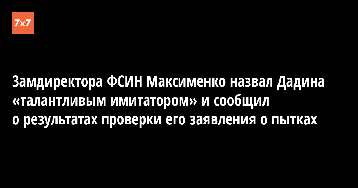 Заместитель директора ФСИН России Валерий Максименко в интервью «РИА-Новости» назвал Ильдара Дадина, написавшего письмо о пытках в карельской исправительной колонии № 7, «очень талантливым имитатором». Максименко заявил, что служебная проверка заявлений Дадина о пытках не выявила «недопустимых методов воздействия».