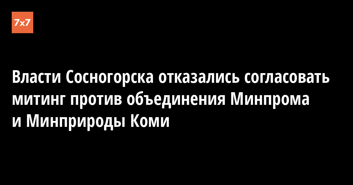 Экологическая организация «Зеленый Сосногорск» подала заявку на проведение 22 января на площади им. Гагарина митинга против объединения Минпрома и Минприроды республики. Администрация Сосногорска митинг не согласовала. Об этом «7x7» сообщила организатор акции Анна Нестерова.