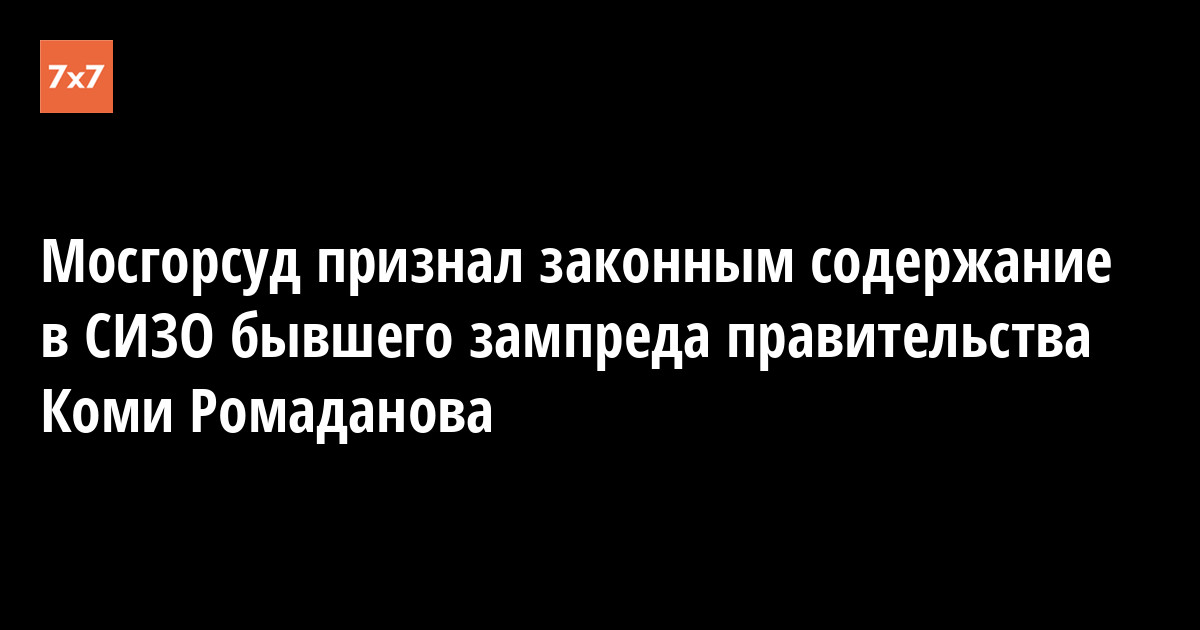Мосгорсуд 13 февраля оставил в силе решение Басманного суда от сентября 2016 года, который продлил бывшему заместителю председателя правительства Коми Константину Ромаданову меру пресечения в виде содержания под стражей. Об этом «7x7» сообщили в Мосгорсуде.