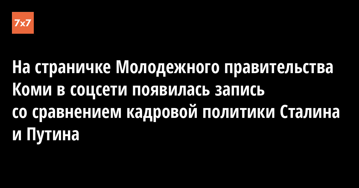 Паблик Молодежного правительства Коми во «ВКонтакте» опубликовал цитату из выступления председателя ассоциации молодежных правительств страны Сергея Конева, в которой он сравнивает кадровую политику Иосифа Сталина и Владимира Путина.