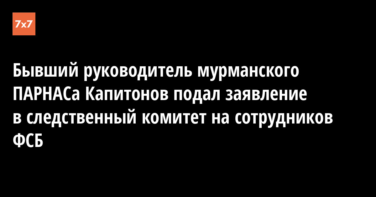 Бывший глава регионального отделения партии ПАРНАС в Мурманской области Андрей Капитонов, который ранее заявлял о своем сотрудничестве с Федеральной службой безопасности (ФСБ), подал заявление на сотрудников управления ФСБ по Мурманской области. Сообщение об этом появилось в его блоге на «7x7» 7 марта.