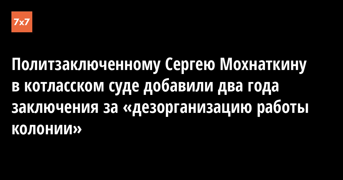 Правозащитника Сергея Мохнаткина, отбывающего наказание в Архангельской области, Котласский городской суд признал виновным в дезорганизации работы колонии и приговорили еще к двум годам лишения свободы. Об этом 20 марта сообщила активистка Екатерина Башилова в своем Facebook.