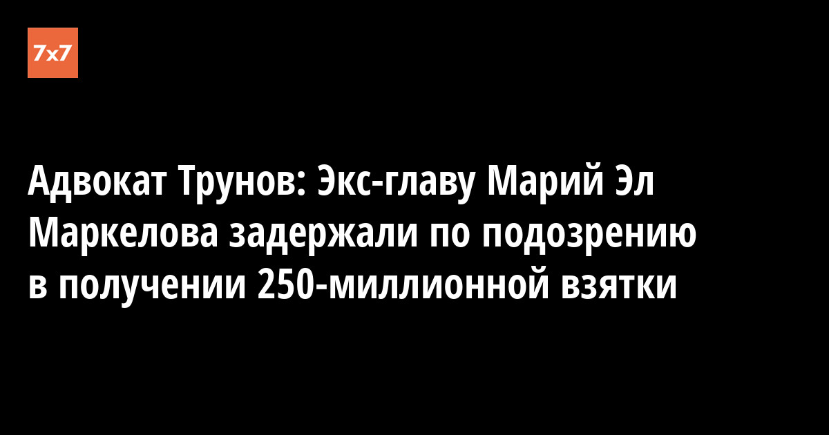 Задержанного экс-главу Марий Эл Леонида Маркелова подозревают в получении 250-миллионной взятки — якобы такую сумму пообещал передать ему предприниматель Николай Криваш путем «фиктивной покупки акций подконтрольного Маркелову ООО „Тепличное“». Об этом «7x7» рассказал адвокат Криваша Игорь Трунов.