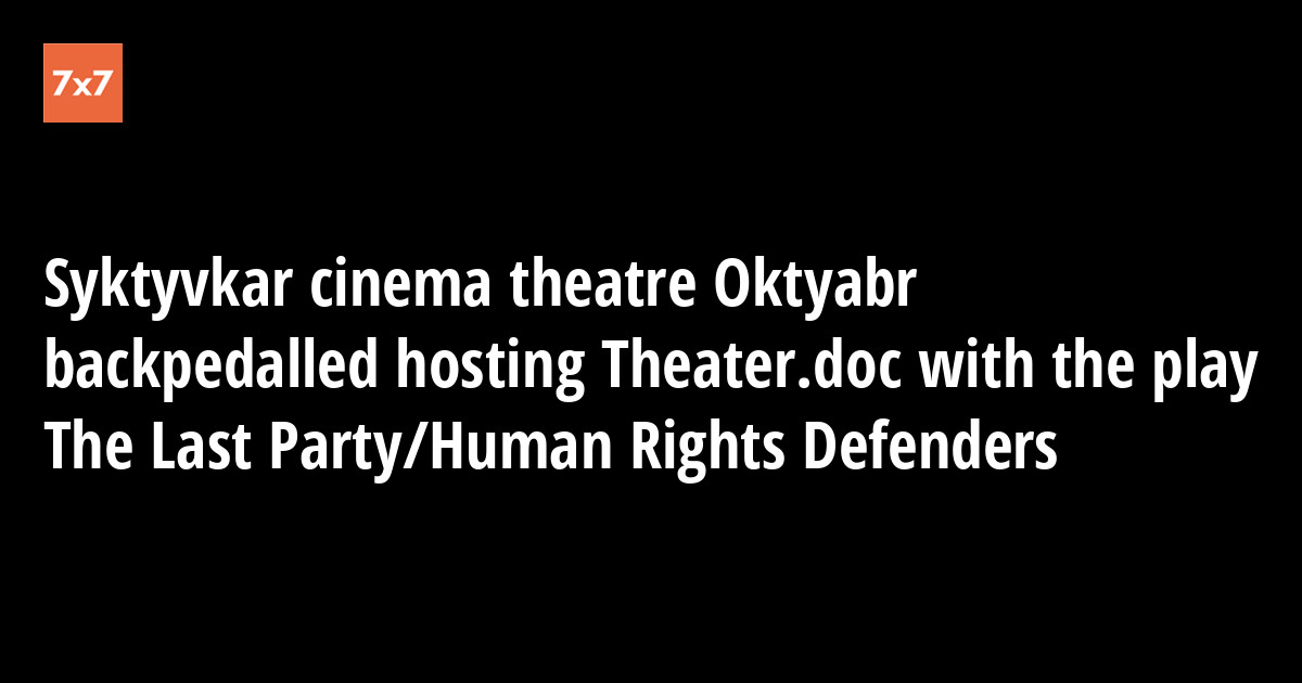 Syktyvkar cinema theatre Oktyabr [October] revoked the preliminary agreements with the theatre Teatr.doc play The Last Party/Human Rights Defenders organizers on hosting it on its venue, which was supposed to take place on April 30, as the road tour organizer Veronika Tarzian informed the online magazine "7x7" reporters.