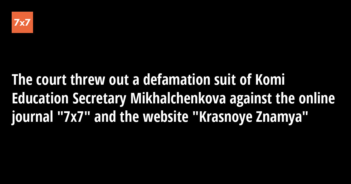 On April 17, the Syktyvkar city court decided to throw out a defamation suit of Komi Education Secretary Natalia Mikhalchenkova against the online journal "7x7" and the website "Krasnoye Znamya" [Red Banner], as reported by the "7x7" journalist from the courtroom.