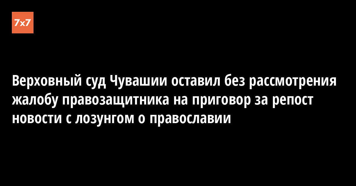 Верховный суд Чувашии оставил без удовлетворения жалобу правозащитника Алексея Глухова на приговор его подзащитному Дмитрию Семёнову за репост новости, в которой говорилось о приговоре за публикацию запрещенного лозунга о православии. Суд отклонил три ходатайства юриста. Об этом Глухов 18 апреля рассказал на своей странице в Facebook.