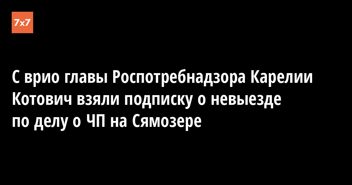 С врио главы Роспотребнадзора Карелии Людмилы Котович, которую обвиняют в халатности в деле о гибели детей на Сямозере, взяли подписку о невыезде. Об этом ТАССу 23 мая сообщил ее адвокат Михаил Шогин.