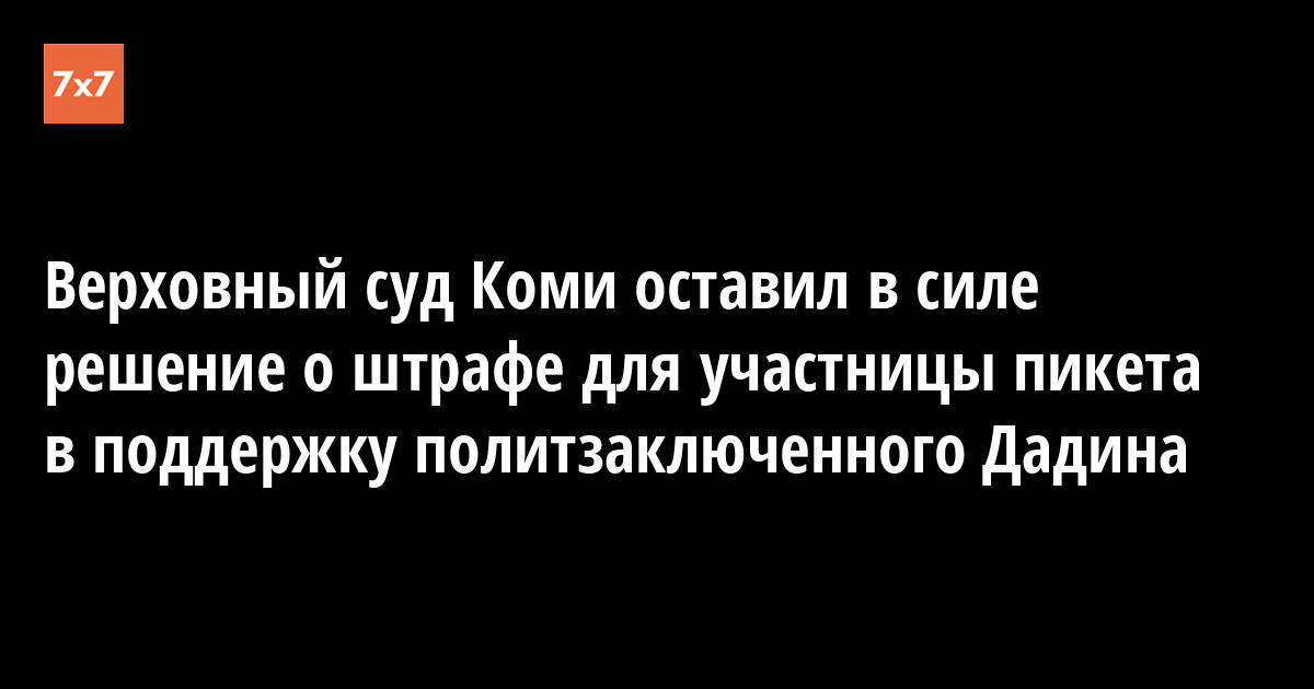 Верховный суд Коми оставил в силе приговор Сыктывкарского городского суда, который присудил активистке Дарье Чернышёвой штраф в 10 тыс. руб. за одиночный пикет на Стефановской площади в поддержку политзаключенного Ильдара Дадина. Об этом корреспонденту «7x7» 31 мая рассказал правозащитник Эрнест Мезак.