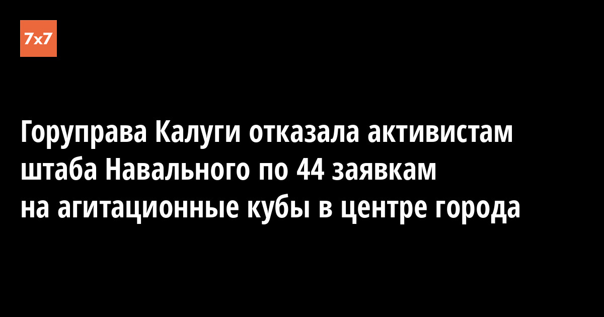 Калужская городская управа отказала активистам местного штаба политика Алексея Навального по 44 заявкам на установку агитационных кубов на Театральной площади города. Об этом 23 июня волонтеры сообщили в сообществе штаба во «ВКонтакте».