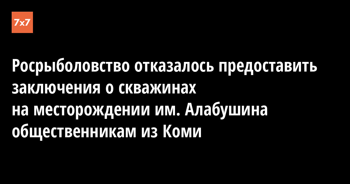 Северо-Западное отделение Федерального агентства по рыболовству России отказалось предоставлять общественникам заключение о строительстве скважин № 1 и 2 на месторождении им. Алабушина. Ответ пришел 5 июля, через месяц после того, как был составлен, сообщил «7x7» заместитель председателя Комитета спасения Печоры (КСП) Иван Иванов.