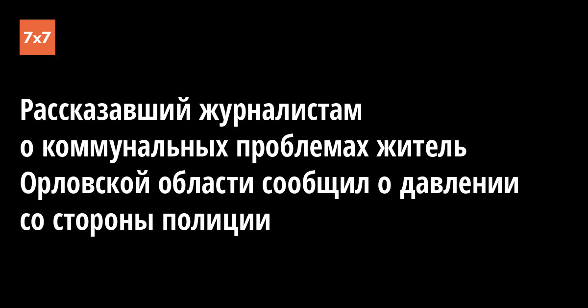 Житель села Селихово Орловской области Юрий Сальков, пригласивший журналистов орловского ВГТРК для освещения местных коммунальных проблем, получил устное предупреждение от участкового: на него якобы написал заявление сам глава Знаменского района Сергей Сёмочкин, который заподозрил его в нарушении порядка проведения и организации митингов и собраний. Об этом корреспонденту «7x7» рассказал сам инициатор съемок.