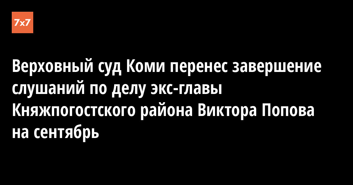 Верховный суд Коми 14 июля 2017 года перенес заседание по делу бывшего руководителя администрации Княжпогостского района Виктора Попова на 6 сентября. Причиной переноса стала плохая видеосвязь с ухтинским СИЗО № 2, где находится подсудимый.
