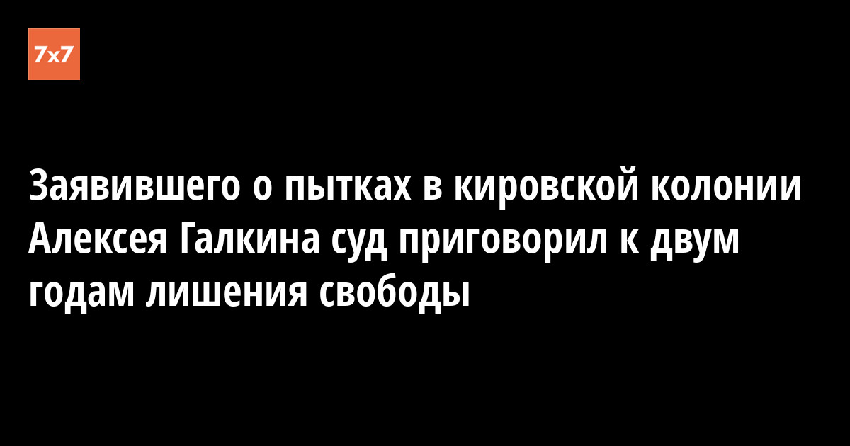 Кирово-Чепецкий районный суд 17 июля приговорил Алексея Галкина, сообщившего о применении к нему пыток в колонии № 20 в Кировской области, к двум годам колонии за ложный донос. Об этом «7x7» сообщил защитник Галкина Пётр Курьянов.