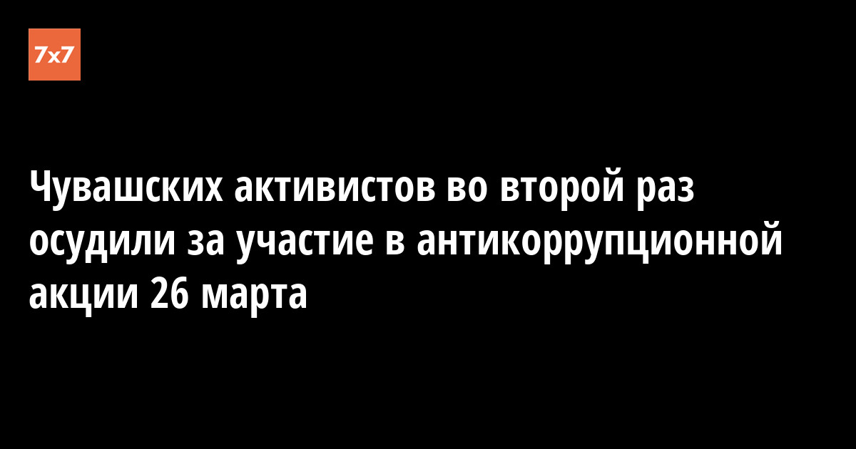 На 26 марта чувашским активистам не согласовали ни одной площадки для проведения антикоррупционного митинга и предложили перенести мероприятие на другую дату. Все возможные места заняли волонтеры «Молодой гвардии „Единой России“» с экологическими пикетами, поэтому протестующие присоединились к ним со своими лозунгами. Полиция посчитала это нарушением, и в первый раз в апреле нескольких активистов судили за неподчинение требованиям полиции — их приговорили к штрафам.