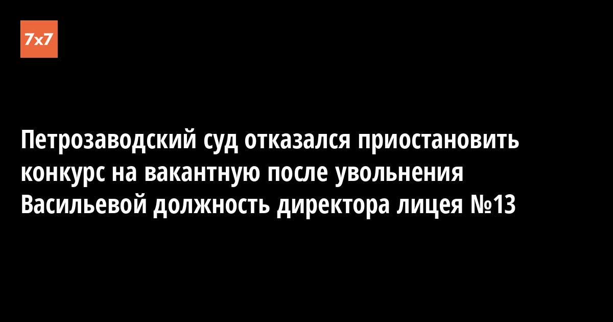 Судья Петрозаводского городского суда Ирина Кузнецова 28 июля отклонила ходатайство бывшего директора лицея №13 Галины Васильевой. Васильева попросила приостановить конкурс на ее должность, пока суд не примет решение по поводу ее увольнения, рассказала адвокат Елена Пальцева.