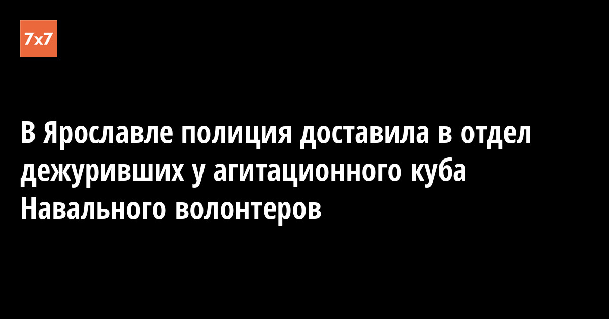 Полиция Ярославля 2 сентября доставила в отделение двух волонтеров местного штаба политика Алексея Навального, которые дежурили около агитационного куба в гайд-парке на площади Юности. Это несовершеннолетний Вадим (его фамилия пока неизвестна) и координатор штаба Елена Лекиашвили. Об этом «7x7» сообщила сама Лекиашвили.