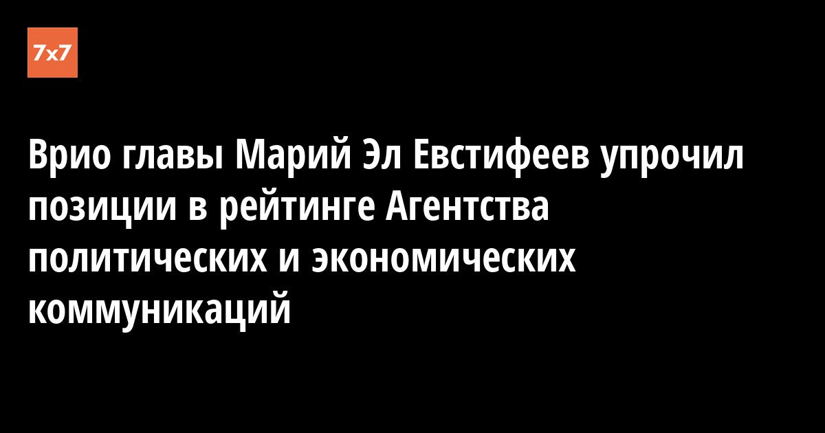 Временно исполняющий обязанности главы Марий Эл Александр Евстифеев занял в губернаторском рейтинге влияния 46-е место из 85. Рейтинг, составленный экспертами Агентства политических и экономических коммуникаций (АПЭК), опубликован 6 сентября.
