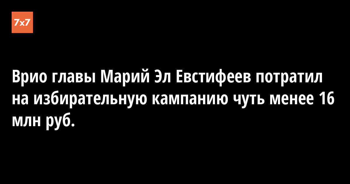 Расходы Евстифеева более чем в пять раз превышают общую сумму расходов трех других кандидатов на должность главы Марий Эл. Выдвиженец от ЛДПР Альберт Фёдоров израсходовал практически полностью сумму со своего избирательного счета — из 1,8 млн руб. на нем остались только шесть тысяч рублей. Расходы Наталии Глущенко («Справедливая Россия») составили 641 (из 791) тыс. руб. Валентина Злобина («Партия пенсионеров») 399 тыс. руб. (всего на счету у нее было 400 тыс. руб.).