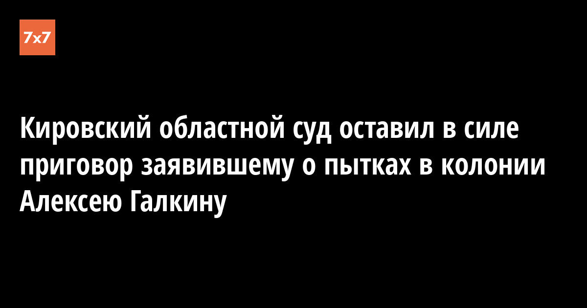 Кировской областной суд 13 сентября оставил в силе приговор осужденному Алексею Галкину, который в январе 2017 года заявил, что его пытали в исправительной колонии №20. Об этом «7x7» сообщил защитник Галкина Пётр Курьянов.