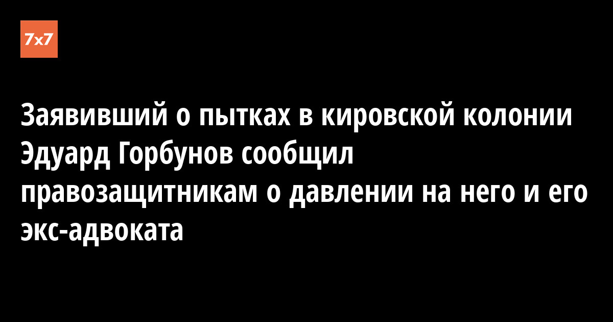 В пресс-службе управления ФСИН по Кировской области «7x7» опровергли информацию о том, что на Горбунова давят.