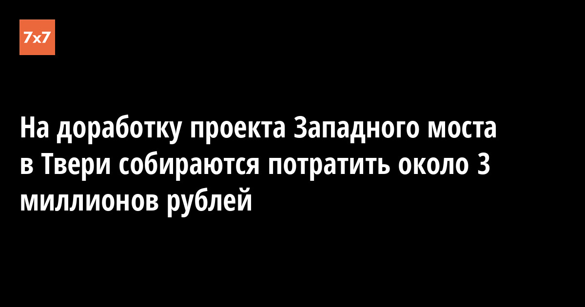 Администрация Твери попросит депутатов городской думы выделить около трех млн руб. на доработку проекта строительства Западного моста. Об этом «7x7» рассказали источники в законодательном органе и правительстве области.