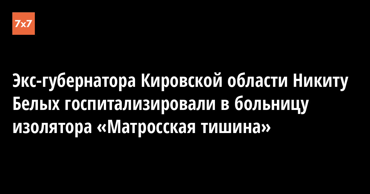Бывшего губернатора Кировской области Никиту Белых 13 октября перевели в больницу следственного изолятора «Матросская тишина». Об этом в Facebook сообщила его невеста Екатерина Рейферт.