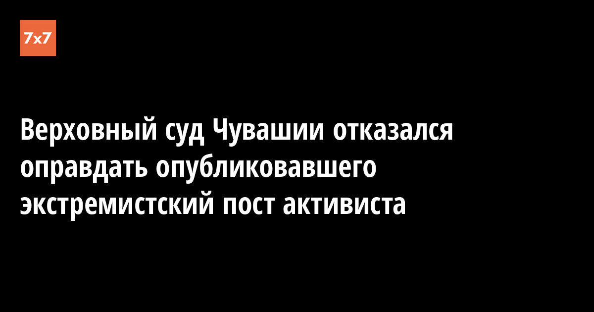 Верховный суд Чувашии оставил в силе наказание активисту чувашского штаба Навального Алексею Миронову, которого осудили за экстремизм в публикации на сайте «ВКонтакте». Об этом 24 октября корреспонденту «7x7» сообщил чувашский активист Дмитрий Семёнов.