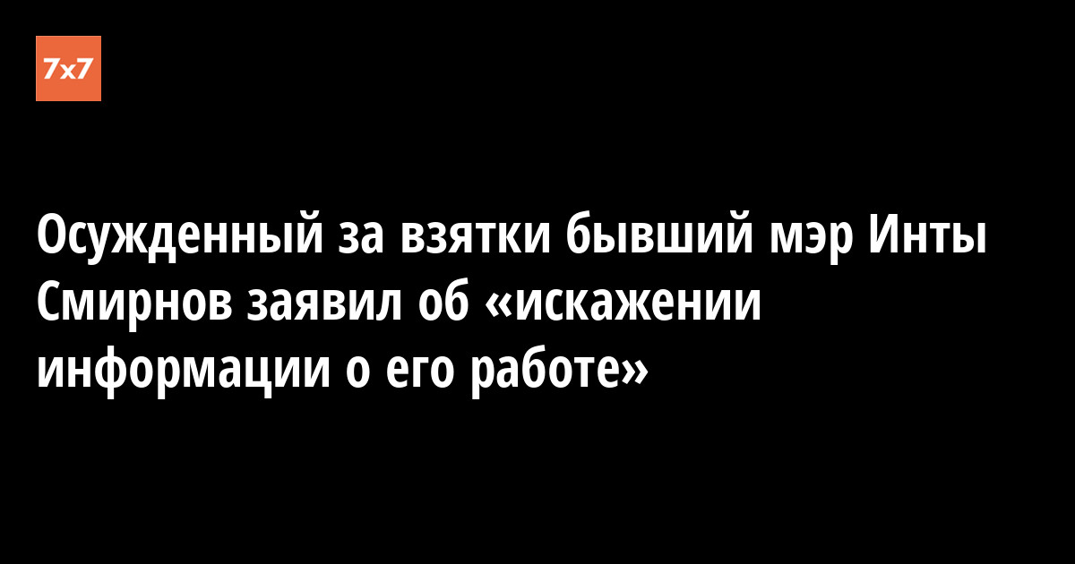 Бывший руководитель администрации Инты Павел Смирнов, осужденный на 11 лет за получение взяток, заявил, что информация о его работе в городе во время судебного процесса над ним была искажена на 90%. Об этом Смирнов написал в письме, которое пришло в интернет-журнал 9 ноября.