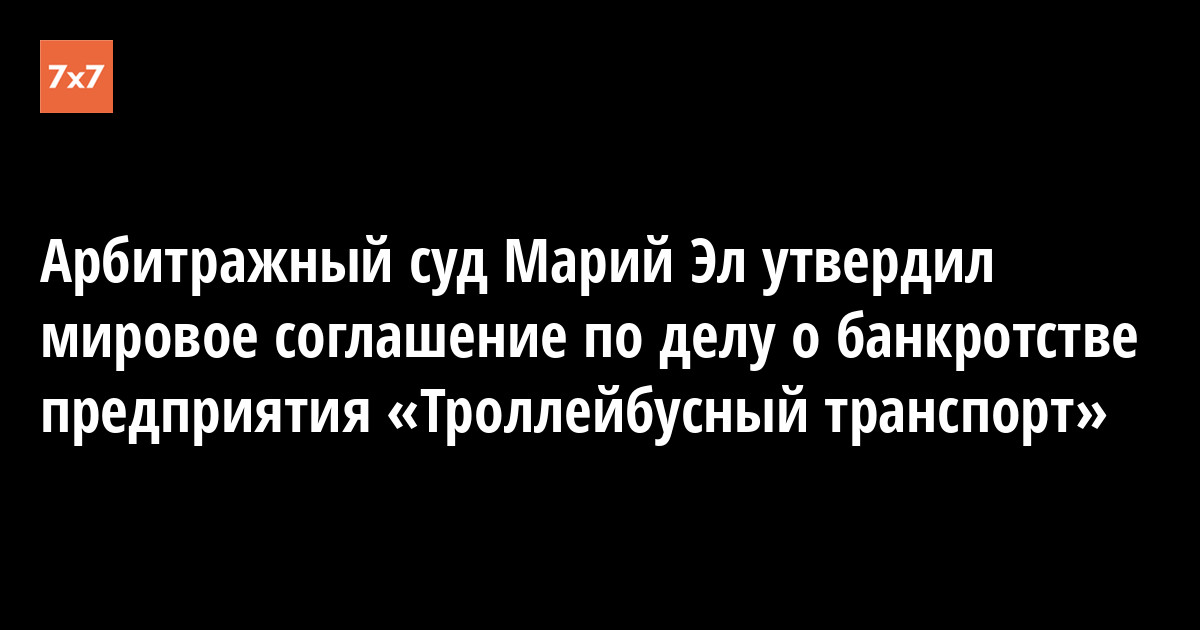 Арбитражный суд Марий Эл утвердил мировое соглашение между муниципальным предприятием «Троллейбусный транспорт» и налоговой инспекцией Йошкар-Олы в деле по банкротству транспортной компании. Решение суда опубликовано 14 ноября.