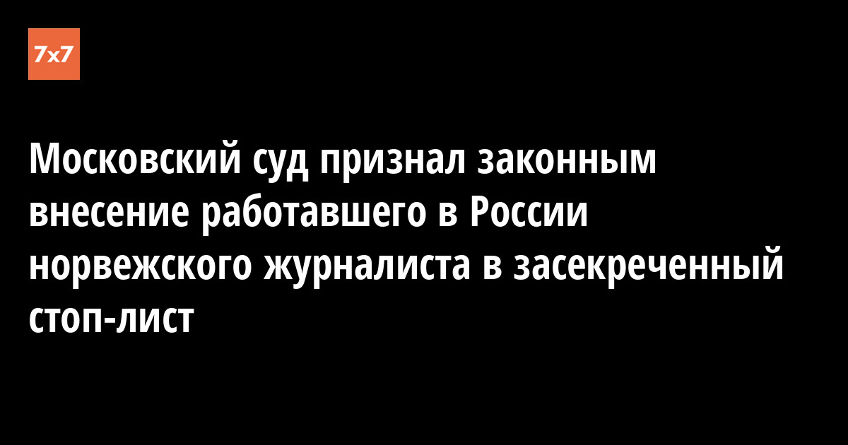 Московский городской суд отказал норвежскому журналисту Томасу Нильсену, который работает главным редактором сайта The Independent Barents Observer, в иске к Федеральной службе безопасности (ФСБ) России. ФСБ засекретила решение, по которому журналиста не пустили в Россию, поэтому юристы не смогли его оспорить. Об этом 4 декабря корреспонденту «7x7» сообщил адвокат Иван Павлов из «Команды 29», который представлял интересы журналиста.