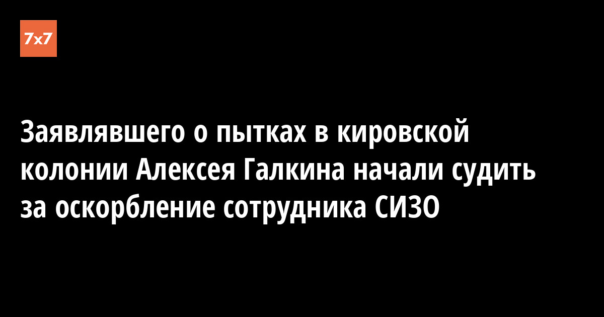 В Ленинском районном суде Кирова начался судебный процесс над Алексеем Галкиным, который заявлял о том, что его пытали в колонии №20, а после этого получил срок за ложный донос. Его обвинили в оскорблении сотрудника следственного изолятора. Об этом «7x7» 5 декабря сообщил защитник Галкина Пётр Курьянов.