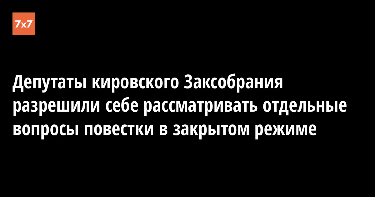 Депутаты Законодательного собрания Кировской области 14 декабря одобрили поправки в регламент, которые позволяют рассматривать отдельные вопросы повестки пленарных заседаний и заседаний комитетов в закрытом режиме, — сообщил корреспондент «7x7».