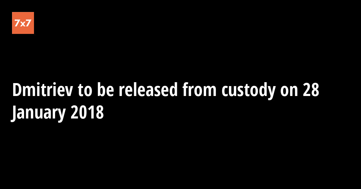 The historian and head of the Memorial Society in Karelia, Yury Dmitriev, will be released from the Detention Centre in Petrozavodsk on Sunday, 28 January 2018, after spending more than a year there, remanded in custody.