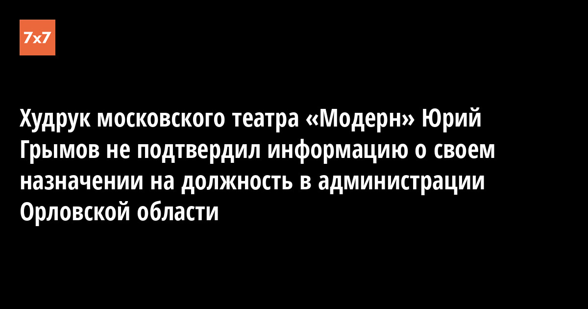 Худрук московского театра «Модерн» Юрий Грымов 13 января в разговоре с корреспондентом «7x7» не подтвердил и не опроверг информацию о его возможном назначении на должность начальника Управления культуры Орловской области.