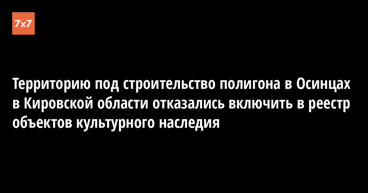 Министерство культуры Кировской области 5 февраля опубликовало решение, по которому «Селище Осинцевское, XVII–XIX вв.», на территории которого строят мусорный полигон, не будет включено в государственный реестр объектов культурного наследия.
