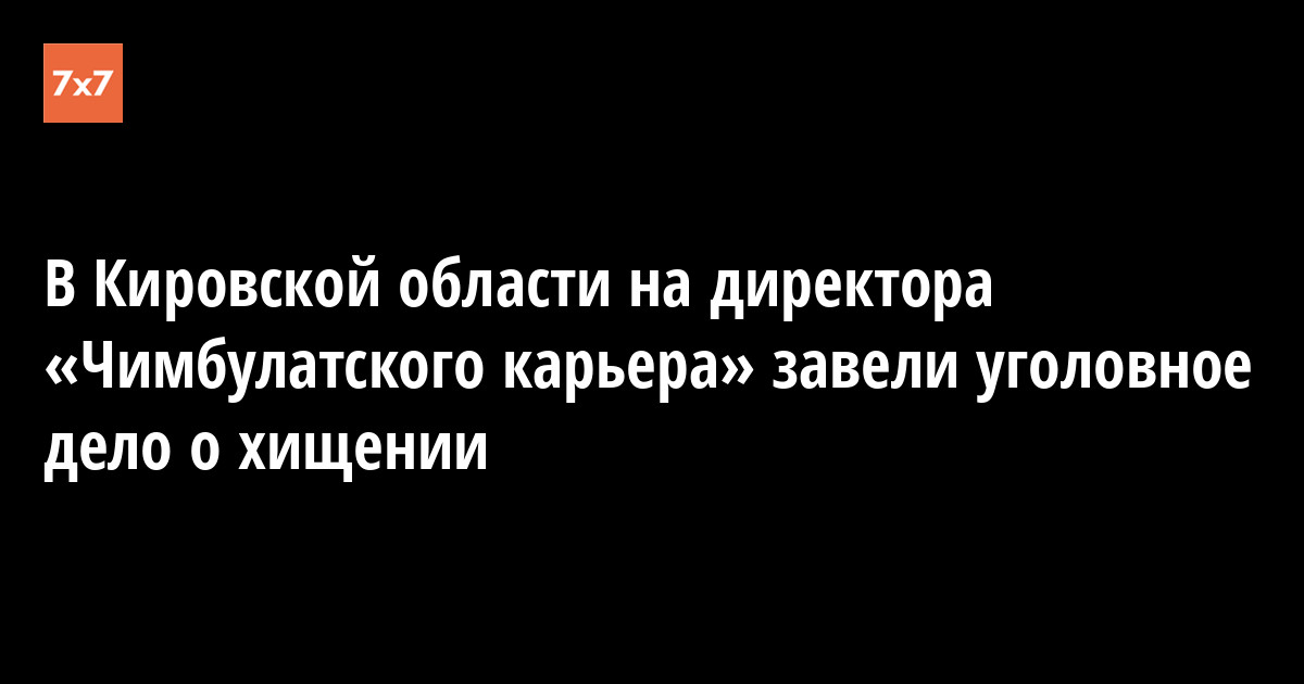 Против руководителя акционерного общества «Чимбулатский карьер», принадлежащего правительству Кировской области, возбудили уголовное дело о хищении имущества в особо крупном размере. Об этом «7x7» 2 марта сообщили в пресс-службе управления Следственного комитета по Кировской области.