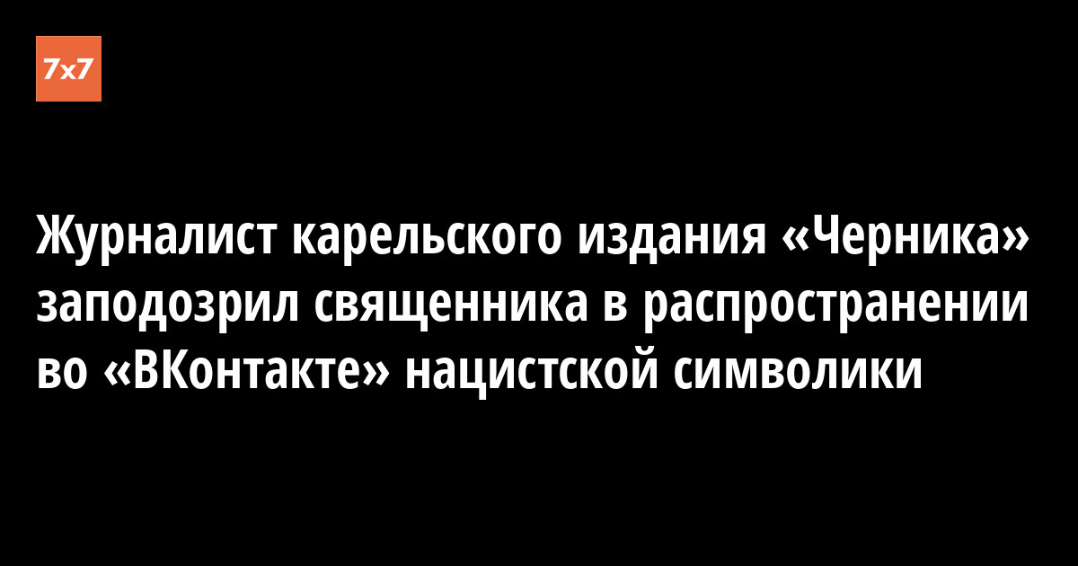 Карельский журналист, владелец онлайн-журнала «Черника» Алексей Владимиров заподозрил священника петрозаводского Крестовоздвиженского собора, отца Константина Савандера в распространении нацистской символики в соцсети «ВКонтакте». 6 марта журналист подал заявления в прокуратуру, управление ФСБ России по региону и в центр по борьбе с экстремизмом министерства внутренних дел с просьбой проверить выложенные на страничке Савандера фотографии. Об этом корреспонденту «7x7» сообщил сам Владимиров.