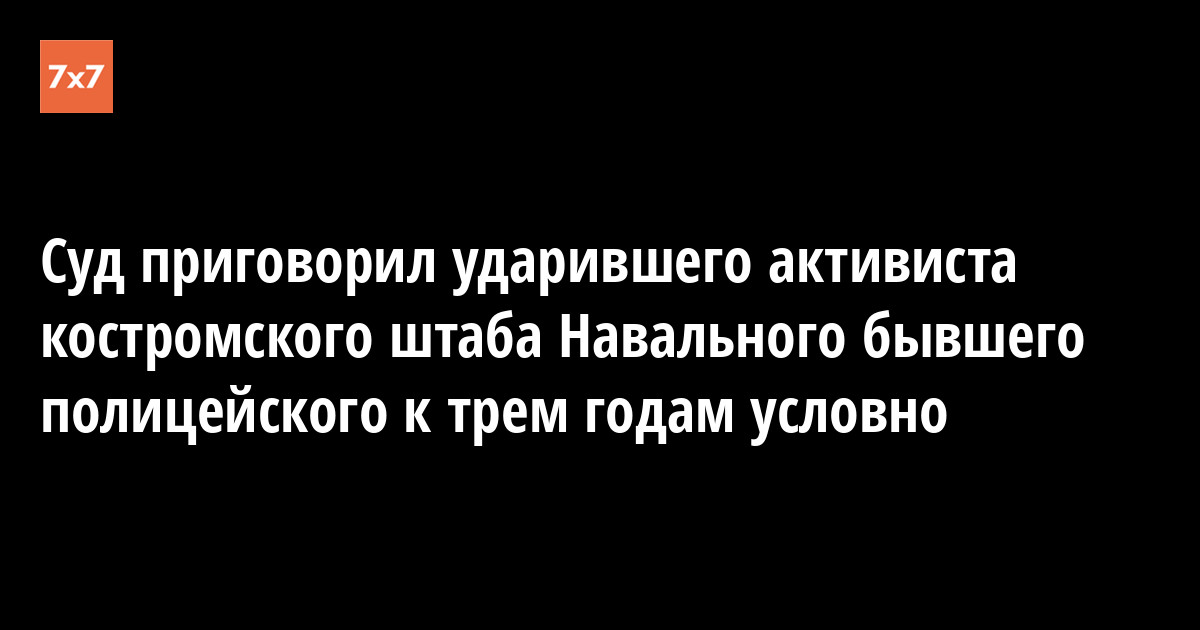 Судья Свердловского районного суда Костромы Василий Глушков 27 марта назначил наказание в виде трех лет колонии условно бывшему сотруднику Центра по борьбе с экстремизмом Эдуарду Волкову, которого обвиняли по статье 286 Уголовного кодекса («Превышение должностных полномочий, совершенное с применением насилия»). На агитационном пикете он рассек бровь стороннику политика Алексея Навального Александру Зыкову.