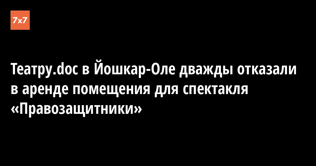 Спектакль «Правозащитники», который Театр.doc собирается показать в Йошкар-Оле, второй раз лишился сцены. Об этом 5 апреля сообщила корреспонденту «7x7» организатор гастролей в Йошкар-Оле, председатель межрегиональной общественной организации «Человек и Закон» Ирина Протасова.