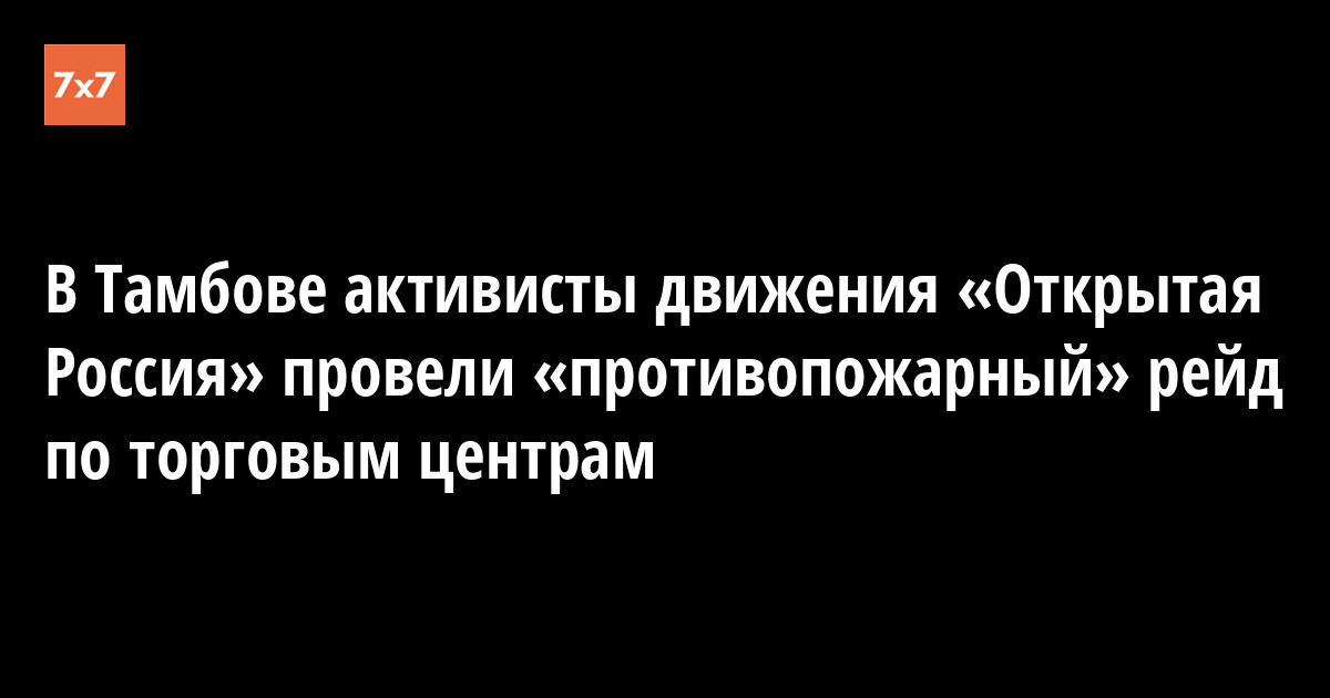 Тамбовские активисты движения «Открытая Россия» 10 и 11 апреля провели рейды в семи торговых центрах. Практически везде они обнаружили нарушения правил пожарной безопасности, сообщил корреспондент «7x7».