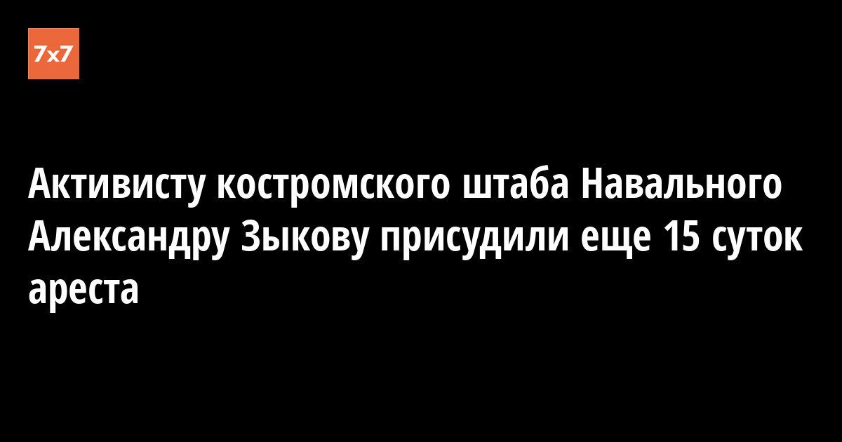 После двух суток ареста за нарушение правил отбывания обязательных работ заместителя координатора штаба Алексея Навального в Костроме Александра Зыкова суд приговорил к новому аресту. Об этом 13 апреля он сообщил на своей страничке в Facebook.