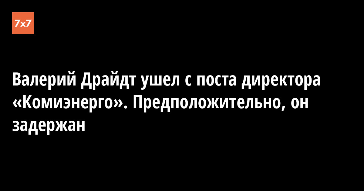 По не подтвержденной пока информации «7x7», руководитель филиала МРСК Северо-Запада (дочерняя компания ПАО «Россети») «Комиэнерго» Валерий Драйдт задержан. В силовых ведомствах республики информацию подтвердить не удалось, в пресс-службе компании 18 апреля уточнили, что Драйдт больше не руководит «Комиэнерго».